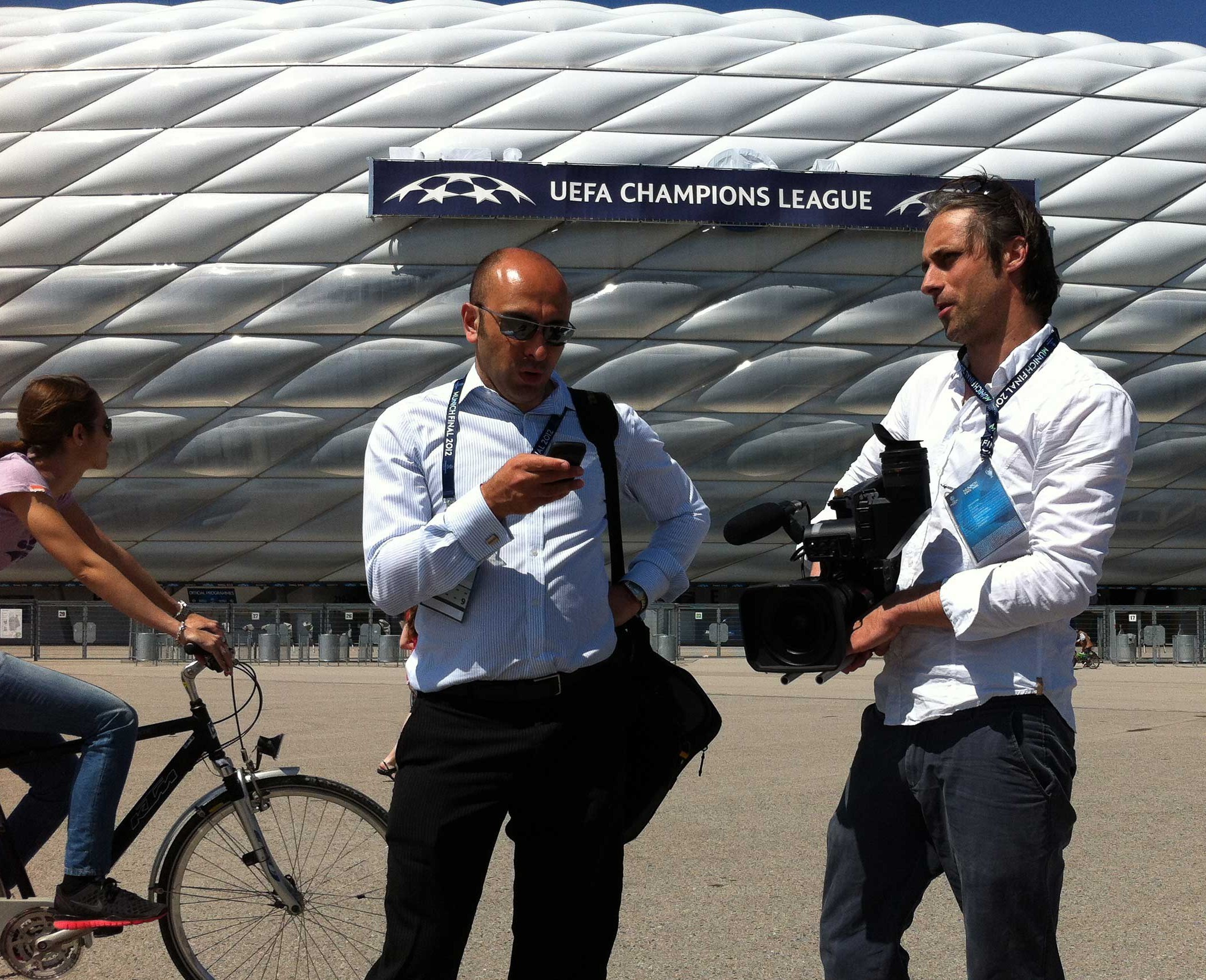 Producerin: Mai 2012: UEFA Champions's League Finale 2012, München mit Reporter Lee Wellings für Aljazeera English. Produktion: Surridge Films Dass ein Champions's League Finale in der Heimatstadt einer der beiden Finalisten ausgetragen wird, ist eine Premiere in der Fußballgeschichte. In München trafen nun der F.C. Bayern München und Chelsea FC aus London aufeinander. Wie durch ein Wunder entschieden die Engländer das Spiel nach Verlängerung und Elfmeterschießen für sich. Die englischen Fußballfans hatten daher keinen Grund zu randalieren.