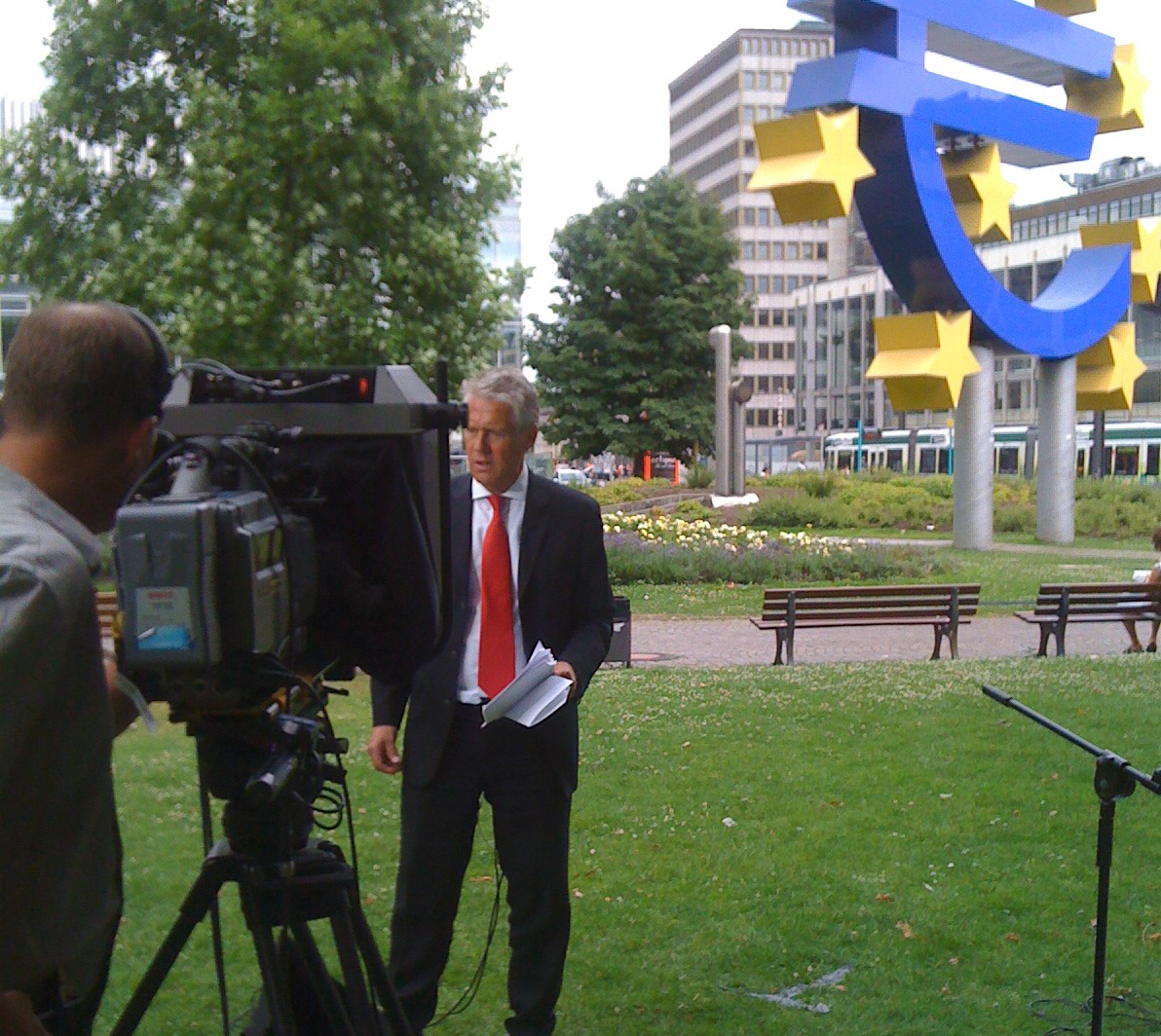 Producerin: März 2010: Finanzkrise, Frankfurt, mit Reporterin Nazanine Moshiri für Aljazeera English. Produktion: Surridge Films Die Finanzkrise hat uns fest in der Hand. Wir sprechen mit dem Chefökonomen der Deutschen Bank: Thomas Mayer, filmen in der Frankfurter Parkett-Börse, an der EZB, im Bankenviertel, die berühmte Frankfurter Skyline.